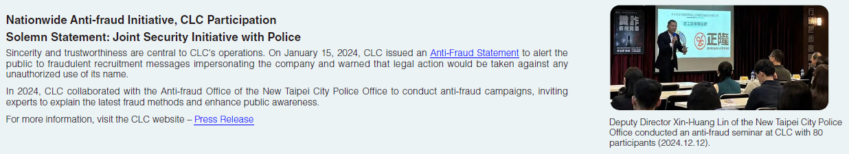 Additionally, CLC issued anti-fraud statements and collaborated with police on awareness campaigns to protect employees and the community.