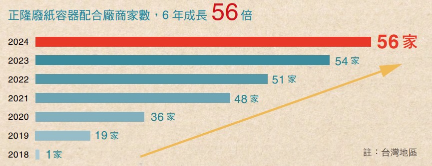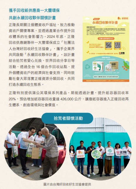 作為台灣規模最大的回收紙再生處理業者,正隆將循環經濟視為企業發展的核心策略。針對本地回收紙長期夾雜10%至13%生活垃圾(如塑膠、麻繩、廢紙容器等)進而影響再生成效及增加製程耗能的問題,正隆自2018年起便積極輔導全台合作的167家中小型回收業者,健全前端回收體系,提升回收紙品質以接軌國際標準,進而強化產業競爭力。2024年,正隆進一步推動廢紙容器2.0專案,透過培養地區主力夥伴,帶動周邊小型供應商優化廢紙容器分類處理,使得配合供應商數量提升至56家,成功促進在地採購與回收供應鏈生態系。
